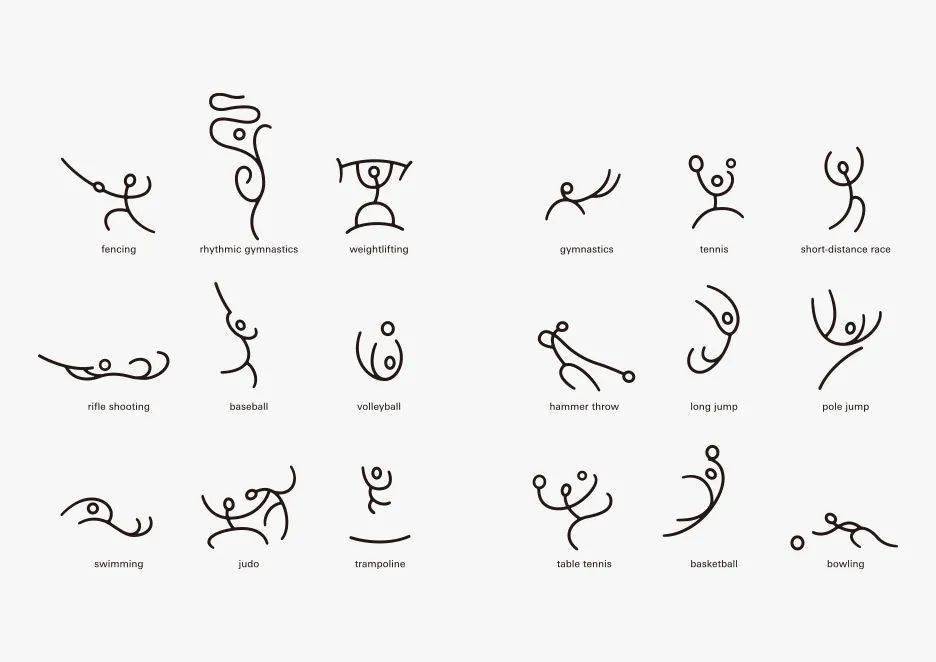 考慮到中國(guó)造型的魅力就在于其 "多元性",確定了標(biāo)識(shí)也不能只是追求簡(jiǎn)單的方向。以中國(guó)的 象形文字為主干,各個(gè)組成部分都是各項(xiàng)賽事的運(yùn)動(dòng)選手們的圖畫解釋(象形文字)。表達(dá)出多種競(jìng)技的圖型的集合,形成了復(fù)雜并且有向心力的標(biāo)志。
